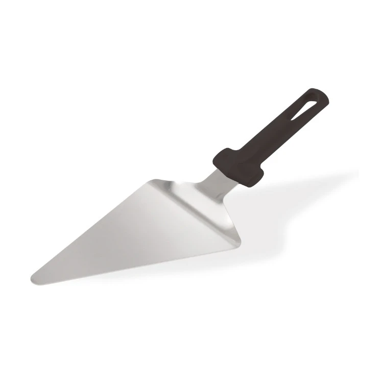 Paletta triangolare per pizza in alluminio. Il manico ergonomico garantisce una presa salda e sicura, per un uso prolungato senza affaticamento. Può essere utilizzata per servire gli spicchi di pizza o per aiutarsi in fase di impasto.